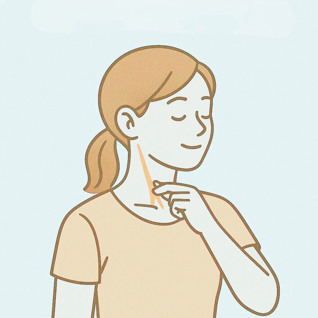 セルフケアの目的は、深層の筋肉を無理に揉みほぐすことではなく、表層を整えてリンパの出口を確保することにあります。胸鎖乳突筋は繊細な場所のため、力づくで筋肉をほぐそうとすると逆効果になりかねません。しかし、筋肉の表面を覆う皮膚を優しくつまみ上げることで、その下にある筋膜やリンパの循環が促され、結果として深部の硬直も解けやすくなります。